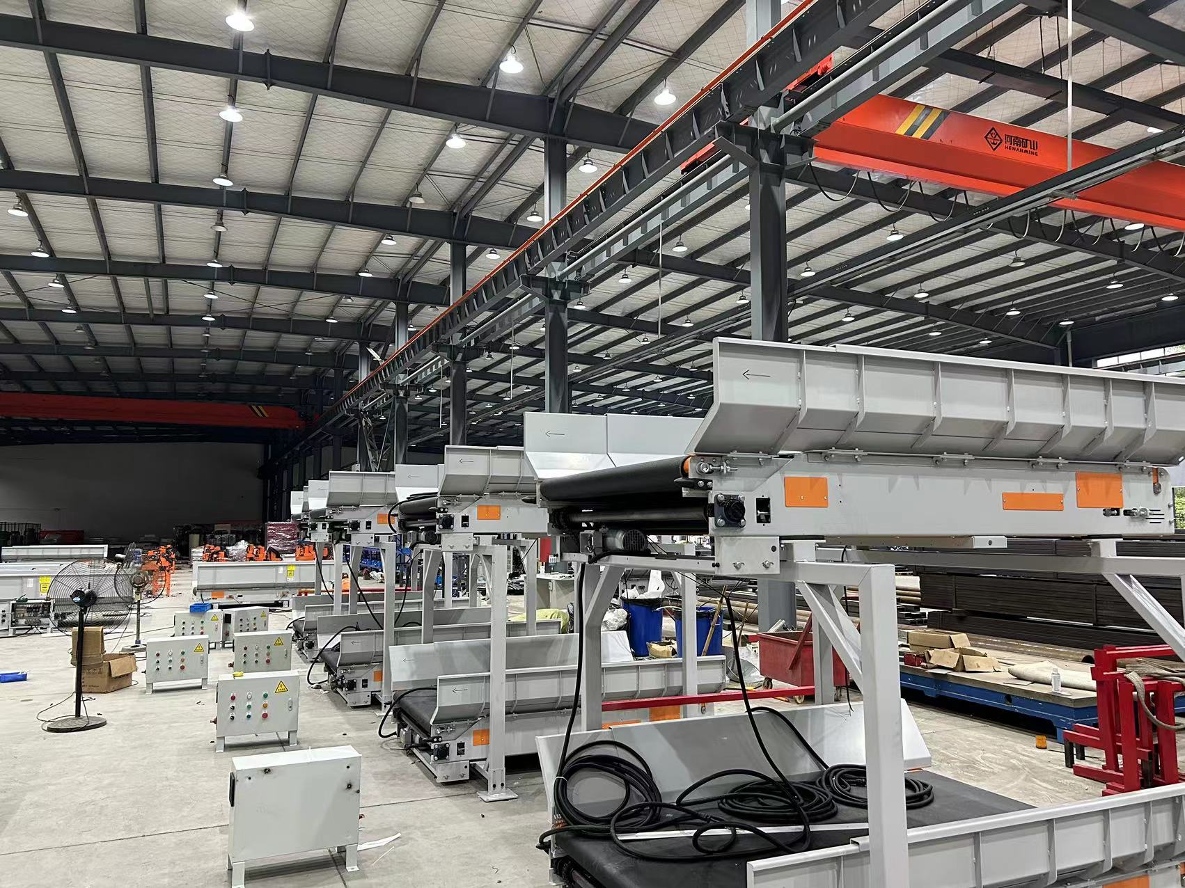 留出距离让消防门落地,正常工作状态时具备常规输送机功能。