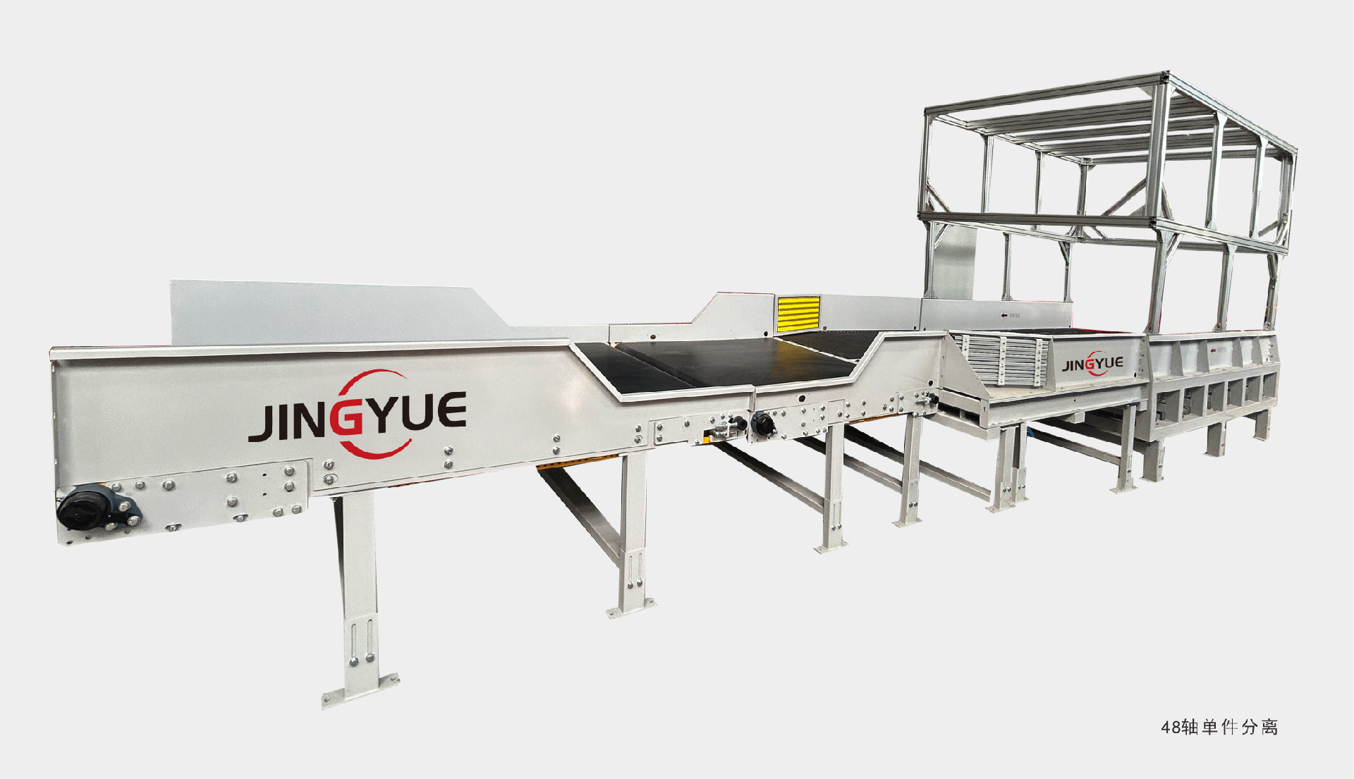 精悦单件分离系统可以对包裹进行整理、分离、智能排队,从而将批量的包裹变成单件排列,形成整齐的“阵型”,配合大型自动分拣设备,实现全自动传输和分拣,顺利完成订单处理。单件分离设备是物流自动化分拣系统的一部分,可对包裹进行预处理,将左右并行的包裹进行自动分离,使其前后有序的向后端输出。以下是48轴单件分离:
