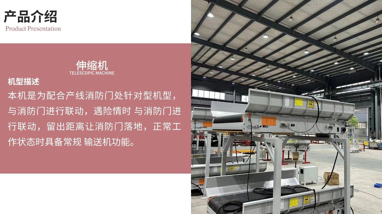 留出距离让消防门落地,正常工作状态时具备常规输送机功能。