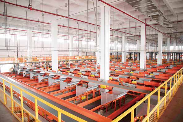 摆臂分流机适宜于分拣各类小件商品,如食品、化妆品、衣物等;分拣出口多,可左右两侧分拣。